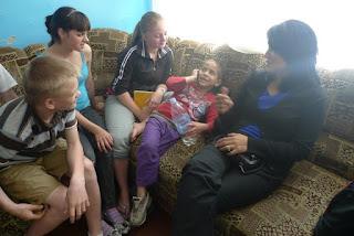 She went straight to the social workers office and they signed off on allowing us to visit Alona. We went up to the orphanage and our kids and the other children were happy to see us again. We waited for Oksana to get forms sighed and copied. Then we went to the sanatorium to get Alona's hand written letter stating her desires to have us adopt her. As we starting to walk on to the sanatorium grounds, she spotted us and came running to meet us. Hugs and kisses is the norm for this child. I hope that continues when we get back to the states.